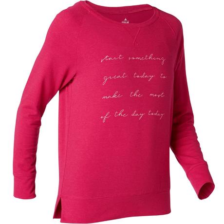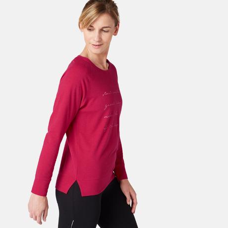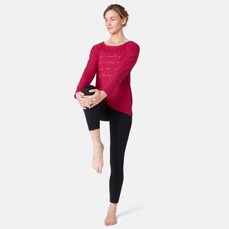 ДАМСКА БЛУЗА С ДЪЛЪГ РЪКАВ ЗА ПИЛАТЕС 500, ЧЕРВЕНА С ПРИНТ