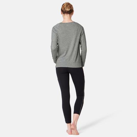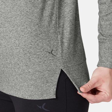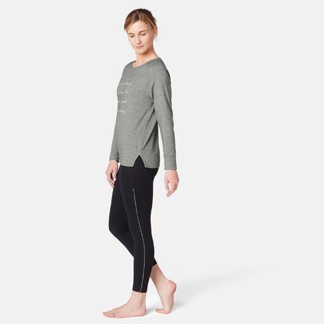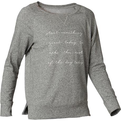 ДАМСКА БЛУЗА С ДЪЛЪГ РЪКАВ ЗА ПИЛАТЕС 500, СИВА С ПРИНТ