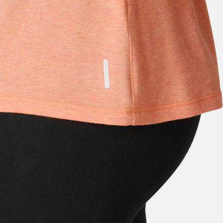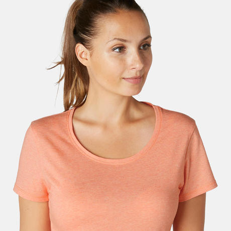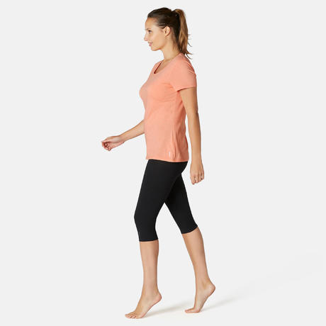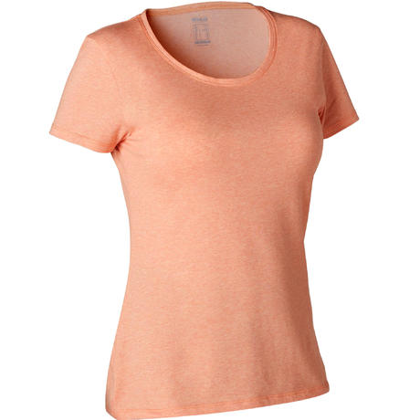 ДАМСКА ТЕНИСКА ЗА ГИМНАСТИКА И ПИЛАТЕС 500 REGULAR, оранжева С ПРИНТ