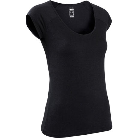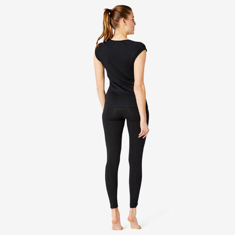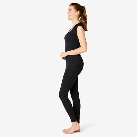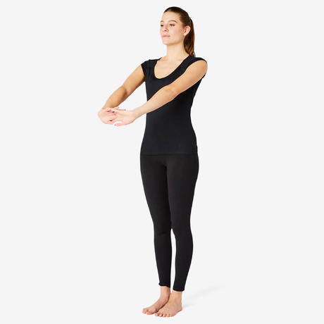 ДАМСКА ТЕНИСКА ЗА ГИМНАСТИКА И ПИЛАТЕС 500 SLIM, ЧЕРНА