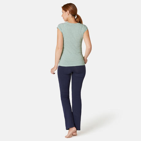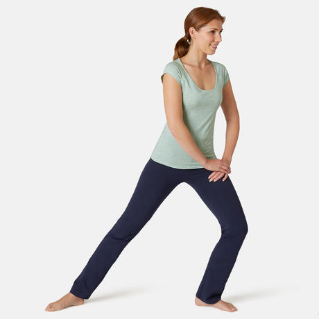 Тениските за гимнастика и пилатес се предлагат в два модела - кройка Slim (вталена) и кройка Regular (права). Тениска Slim (вталена кройка) подчертава силуета, благодарение на кройката по тялото и женственото остро деколте. Ще се влюбите леката й и мека на допир материя, която осигурява дишане на тялото. Тениска, която ви осигурява максимален комфорт при редовни фитнес тренировки с умерено темпо.