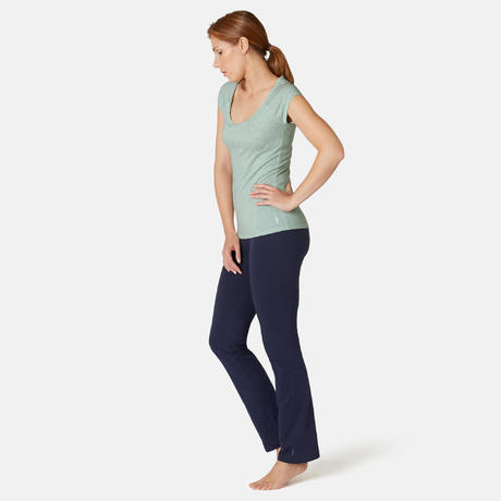 ДАМСКА TЕНИСКА ЗА ГИМНАСТИКА И ПИЛАТЕС 500 SLIM, ЗЕЛЕНА
