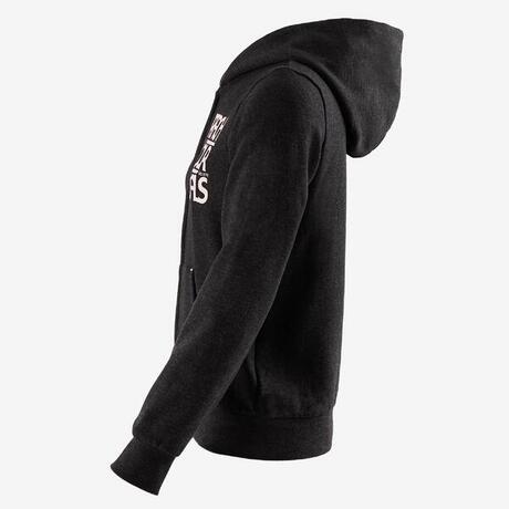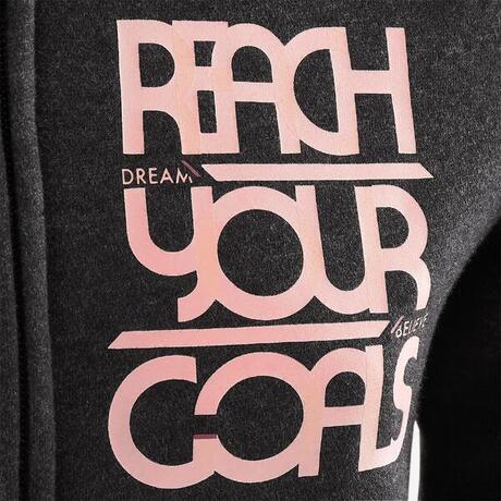 Цип, качулка, джобове, принт и ластични маншети на ръкавите и в долния край. Идеално е за загряване преди спортни занимания и за часовете по физическо възпитание. Съблича се и се облича лесно.