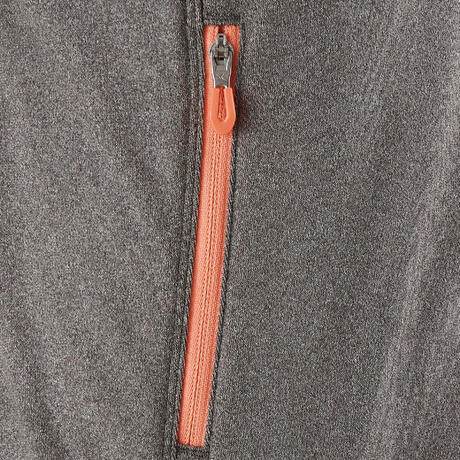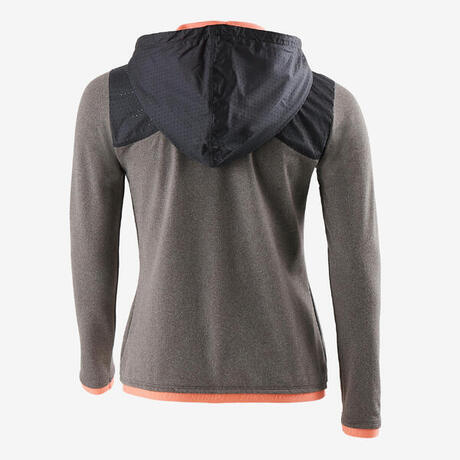 Горнище от два вида материи - материя със състав полиестер и еластан, осигуряваща ефикасно отвеждане на изпотяването. Дишащи зони. Качулка и джобове с цип.