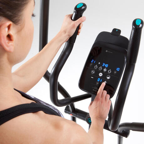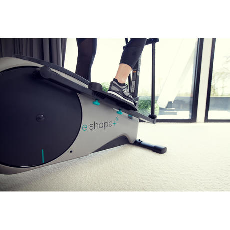 Компютърът на кростренажора E SHAPE+ е с 6 функции: (изгорени калории, разстояние, време, скорост, оборота в минута и сърдечен ритъм, с включен колан) и