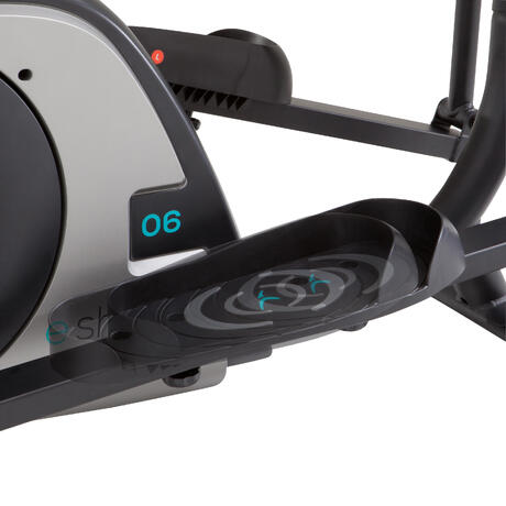 Компютърът на кростренажора E SHAPE е с 6 функции: (изгорени калории, разстояние, време, скорост, оборота в минута и сърдечен ритъм, с включен колан) и