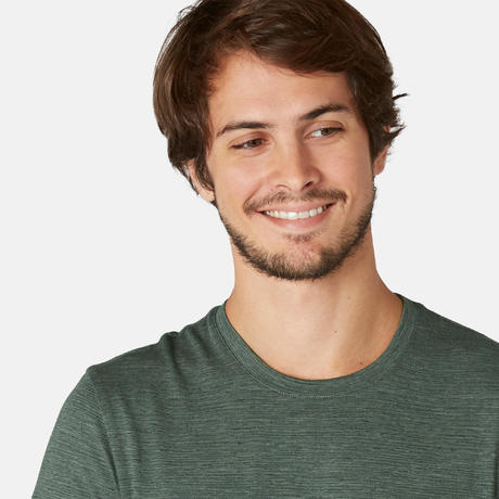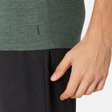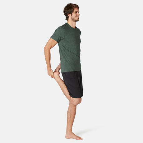 МЪЖКА ТЕНИСКА ЗА ПИЛАТЕС 500 SLIM, КАКИ С ПРИНТ