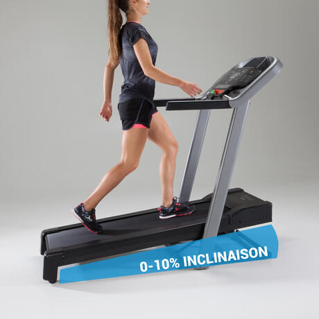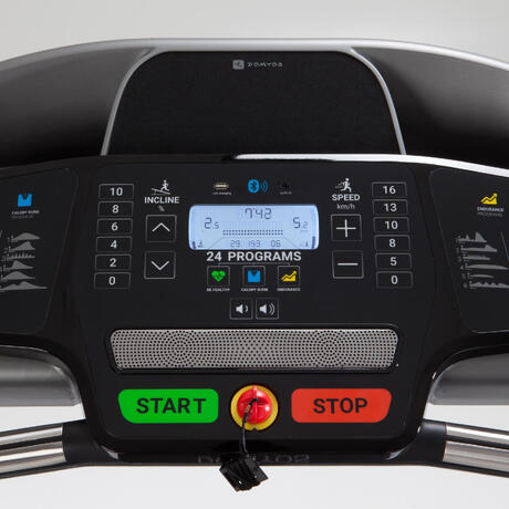 Безшумна пътека с лента, подходяща за бягане с до 16 км/ч. Пътеката T540 е съвместима с приложение Domyos E-Connected.