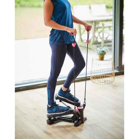 Извайвате силуета си в домашни условия като комбинирате тренировка за укрепване на мускулите и кардио. Степерът MS500 активира коремните мускули и мускулите на долната част на тялото (бедра, седалище и прасци) за комплексна тренировка в дълбочина. С ротационното движение twister натоварвате мускулита на талията в дълбочина. Благодарение на ластиците укрепвате мускулите на горната част на тялото.