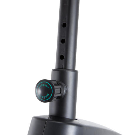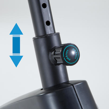 Регулирането на височината на седалката е важно за заемане на правилна позиция. Застанете до велоергометъра и регулирайте височината на седалката, така че тя да е на нивото на ханша.