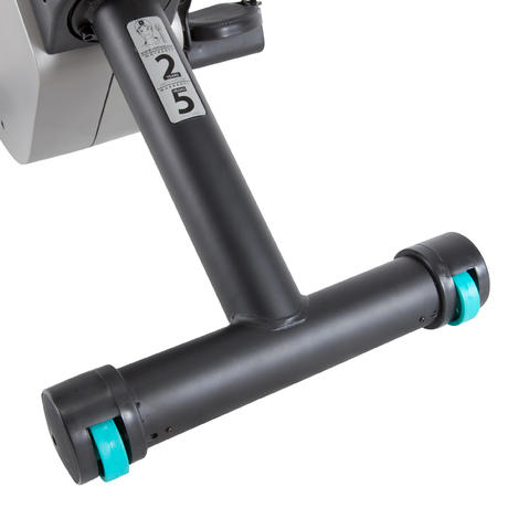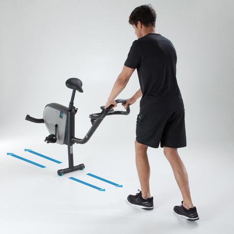 Велоергометърът има колелца в предната част. За да го преместите, застанете пред уреда. Стабилизирайте го с крак и натиснете кормилото, за да преместите тежестта върху колелцата. След това започнете бавно да го придвижвате в желаната посока.