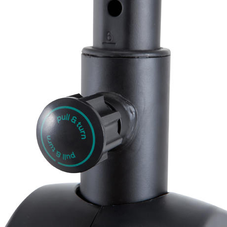 Регулирането на височината на седалката е важно за заемане на правилна позиция. Застанете до велоергометъра и регулирайте височината на седалката, така че тя да е на нивото на ханша.