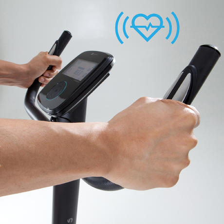 Велоергометърът Essential + има датчици на кормилото. Те са надежден метод за измерване на пулса. Поставете длани върху датчиците, след няколко секунди сърдечният ви ритъм се изписва на екрана.