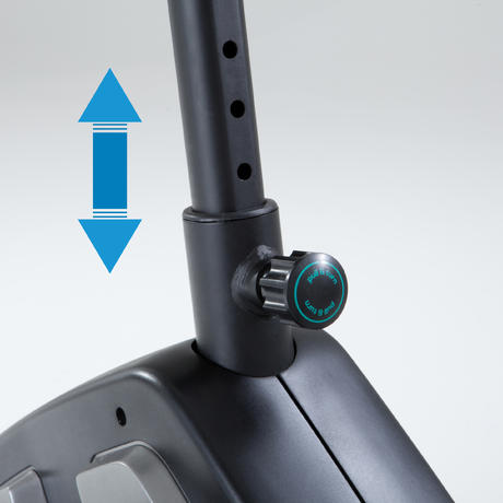 Регулирането на височината на седалката е важно за заемане на правилна позиция. Застанете до велоергометъра и регулирайте височината на седалката, така че тя да е на нивото на ханша.