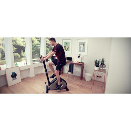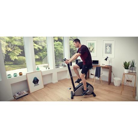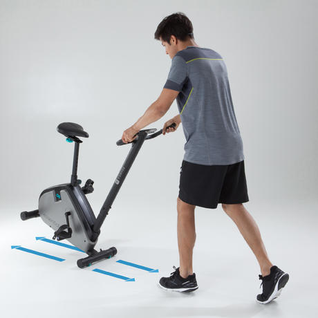 Велоергометърът има колелца в предната част. За да го преместите, застанете пред уреда. Стабилизирайте го с крак и натиснете кормилото, за да преместите тежестта върху колелцата. След това започнете бавно да го придвижвате в желаната посока.